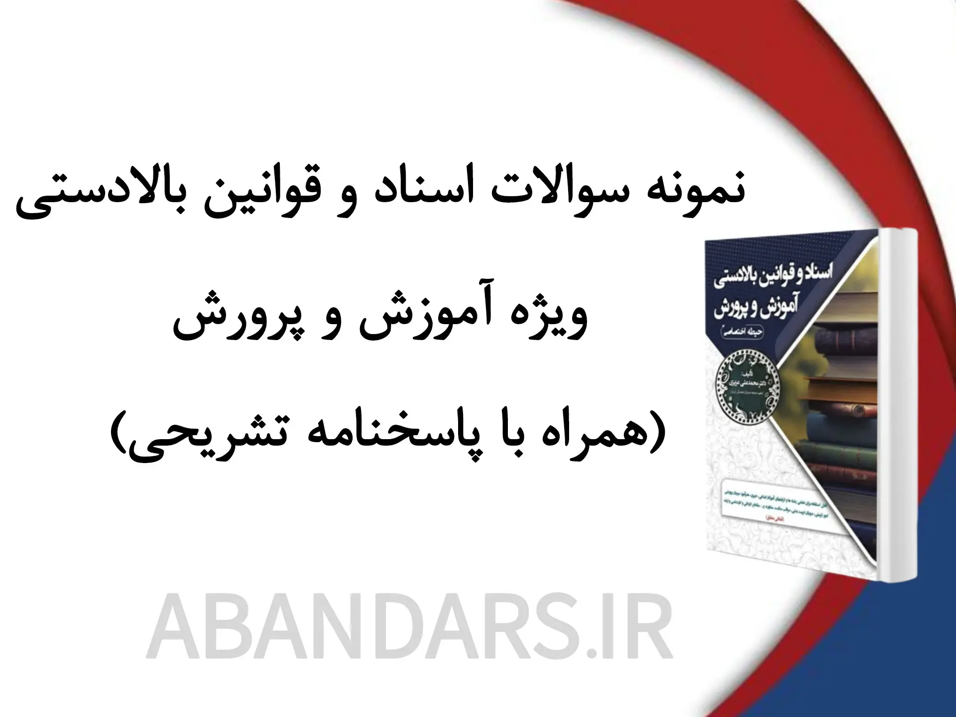 اگر قصد دارید در آزمونهای آموزش و پرورش بهویژه بخش اسناد و قوانین بالادستی موفق شوید، به یک منبع کامل و قابل اعتماد نیاز دارید. در وبسایت آبان درس مجموعهای ویژه از نمونه سوالات اسناد و قوانین بالادستی با پاسخنامه تشریحی آماده کردهایم که دقیقاً بر اساس منابع رسمی و پرتکرارترین مباحث آزمون طراحی شده است. این بسته شامل سوالات تستی و تشریحی به همراه پاسخهای دقیق است تا مسیر موفقیت برای شما سادهتر و سریعتر شود.