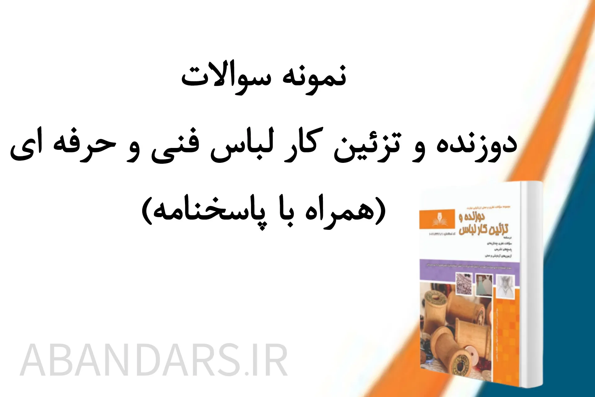 این بخش شامل نمونه سوالات واقعی امتحان دوزنده و تزئینکار لباس فنی حرفهای است تا شما را با سبک سوالات و موضوعات پرتکرار آشنا کند. تمرین این سوالات باعث افزایش اعتماد به نفس شما خواهد شد و تضمین میکند که در روز آزمون با هیچ نکتهای غافلگیر نشوید.
