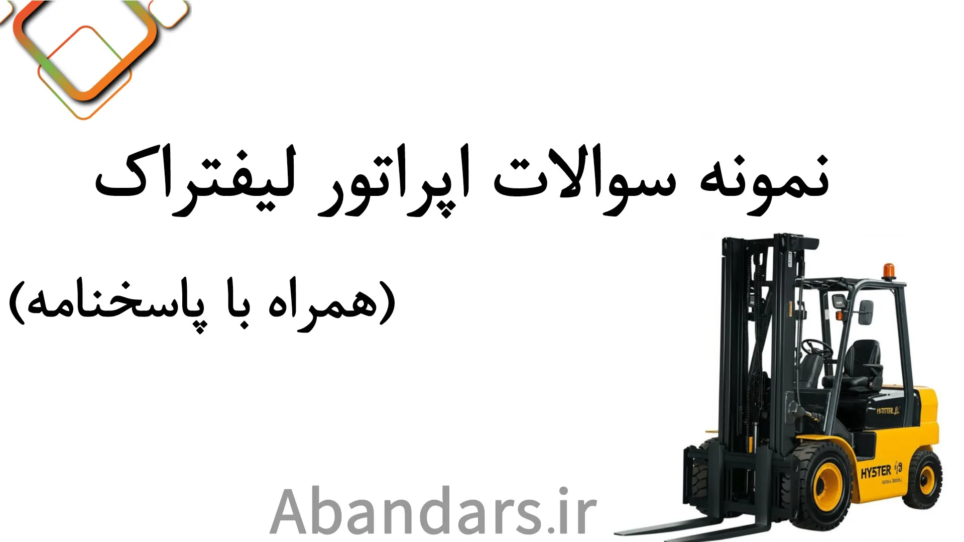دانلود نمونه سوالات اپراتور لیفتراک از آباندرس، دسترسی به یک بسته آزمونی استاندارد و جامع است.