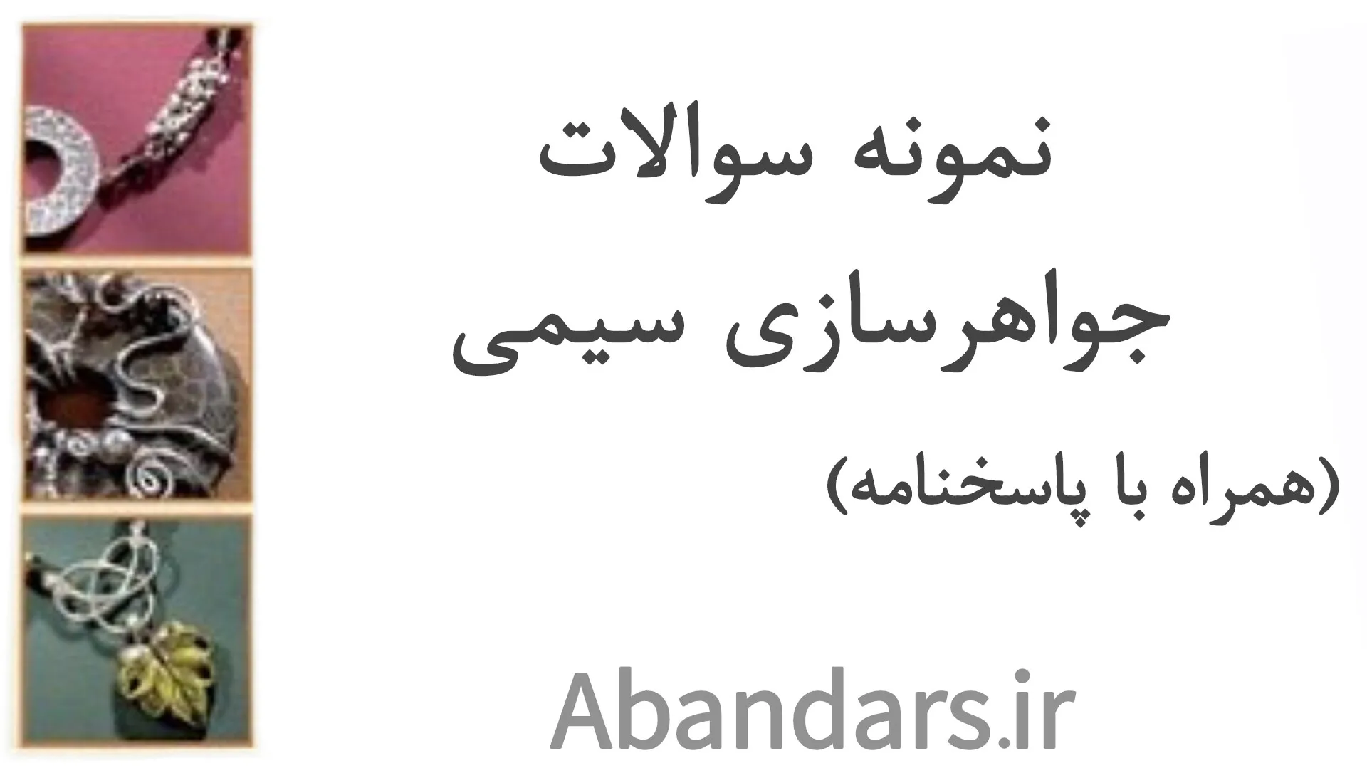 نمونه سوالات فنیوحرفهای جواهرساز سیمی ارائهشده در آباندرس بهصورت هدفمند و جامع طبقهبندی شدهاند. این مجموعه محورهایی مانند: